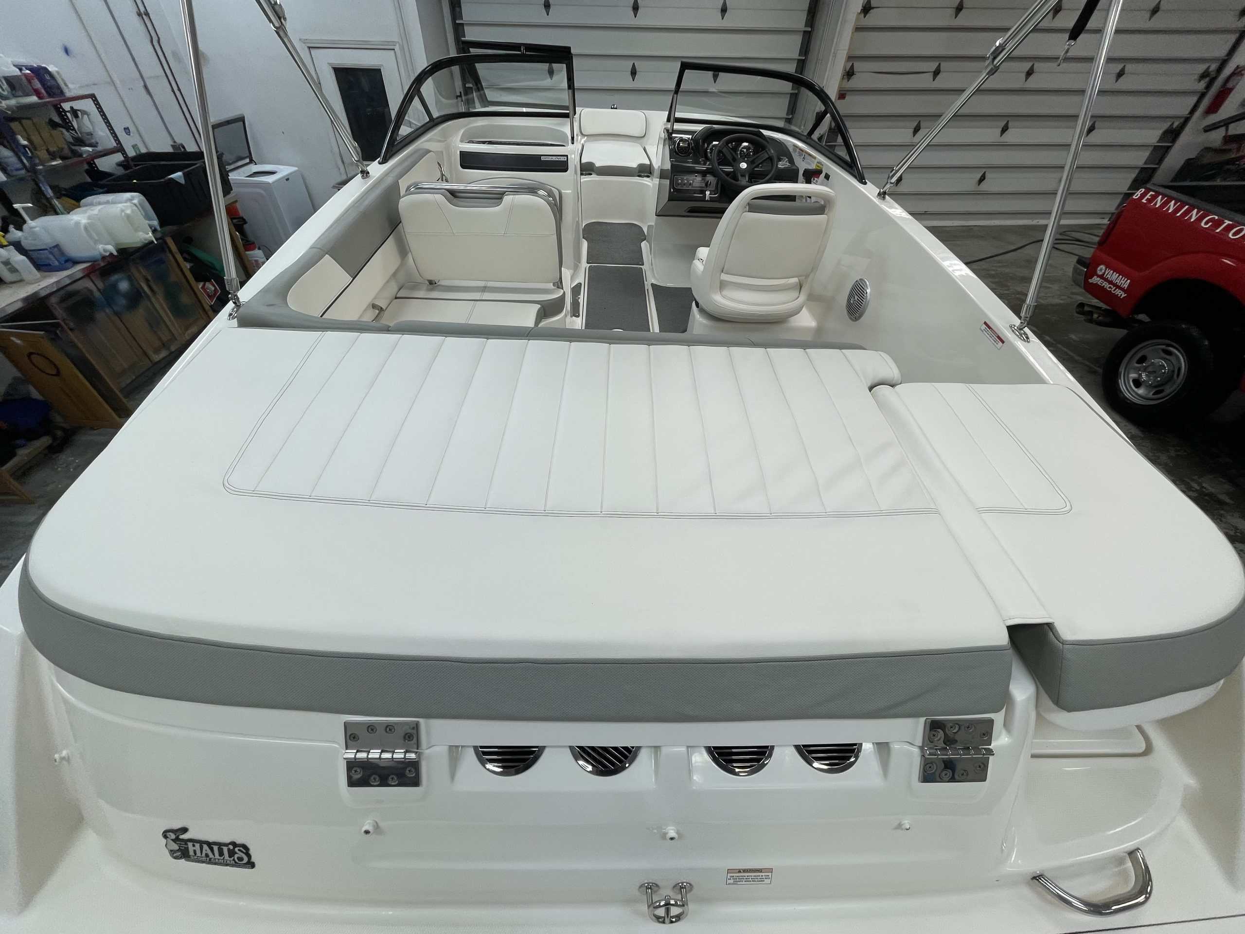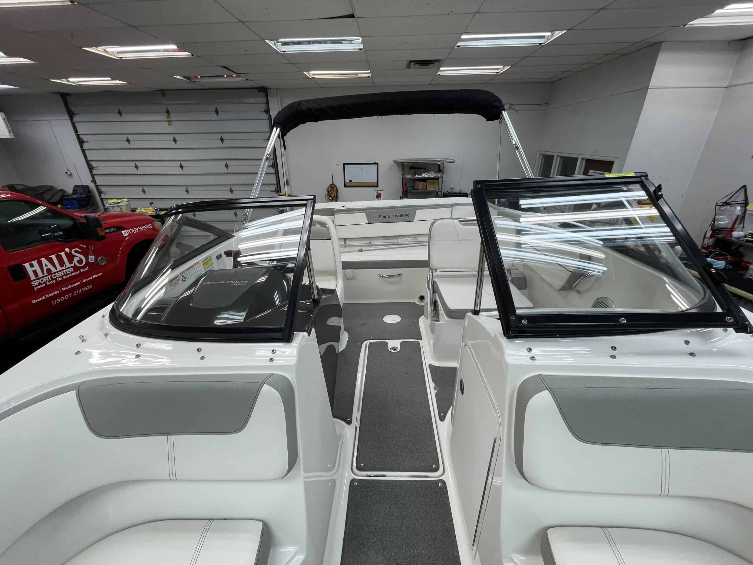 Dive into a world of aquatic adventure with this 2016 Bayliner VR5, available now at Hall's Sport Center in Muskegon. With a remarkably low 246 hours on its engine, this vessel promises long-lasting reliability and performance. The boat comes loaded with features that will enhance your boating experience including a stereo system for your favorite tunes, snap-in carpet for comfort, and a swim platform with ladder for easy water access. The convenient port conv. bench seat, bucket captain's seat, and bow fill-in offer plenty of seating for your crew. Enjoy the comfort of the sunpad, or relax under the shade of the Bimini top. The boat is also equipped with a single battery system, and bow & cockpit cover for protection. Don't let this amazing opportunity sail away!