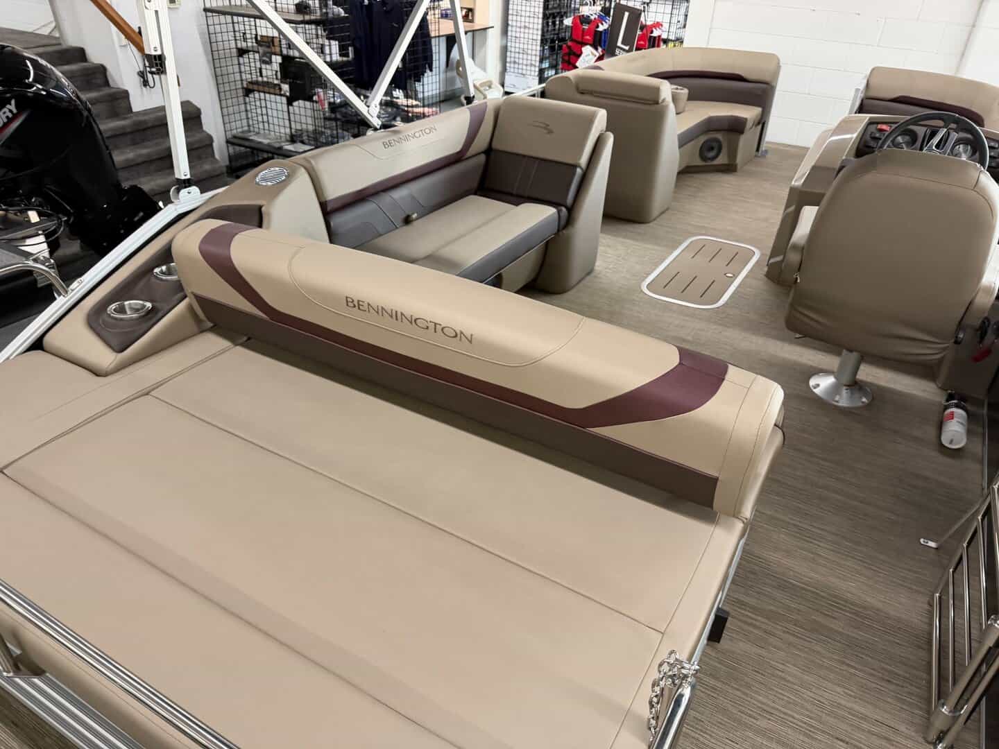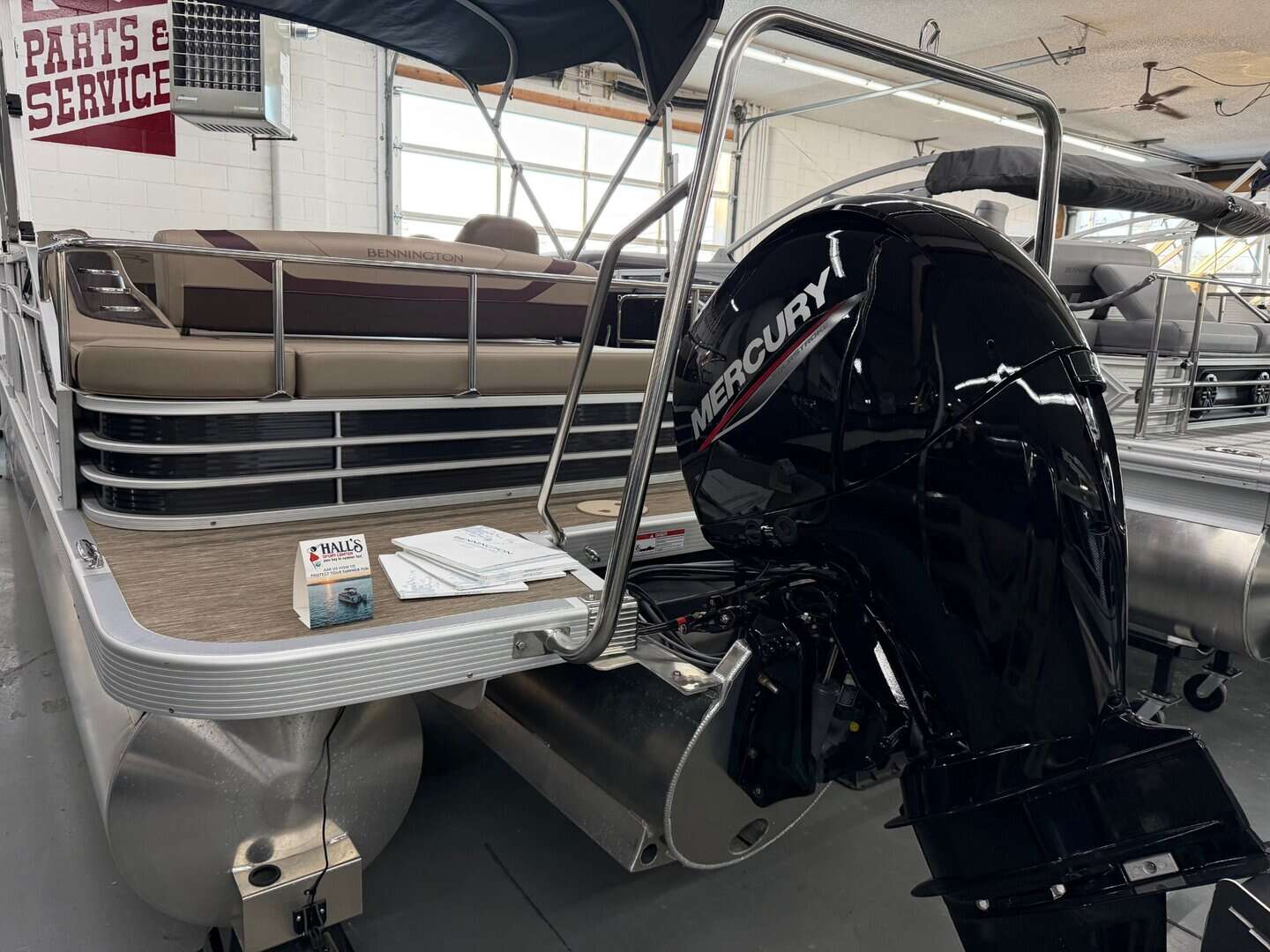 Experience the thrill of the open water with the 2023 Bennington 22 SXSB from Hall's Sport Center in Muskegon. This beautiful boat is outfitted with a 150HP Mercury engine upgrade for unparalleled performance, and a ski tow bar for fun-filled days on the lake. The privacy enclosure and gate glide offer convenience and safety, while stainless steel cleats and in-floor storage add a touch of luxury. Enjoy the SPS package with a 32-gallon transom fuel tank for longer journeys, and entertain with the stowable trap table. The SX highback recliner and portable armrest with stainless steel cup holders ensure comfort throughout your voyage. With additional features like a Striker 4 Fish Graph for the fishing enthusiasts, a Kicker speaker upgrade for music lovers, and a stunning sunset red accent panel, this Bennington boat is the epitome of style and function.