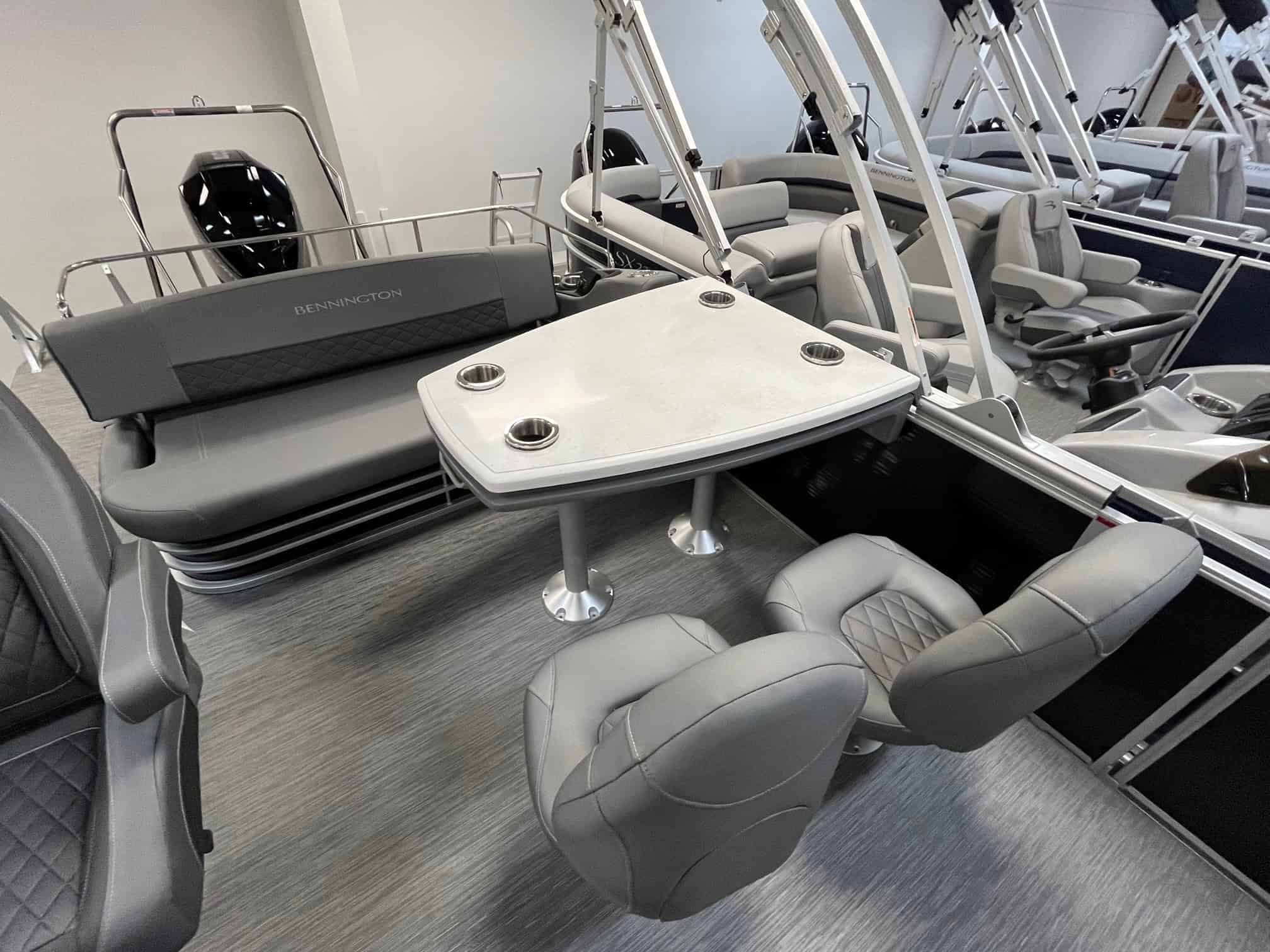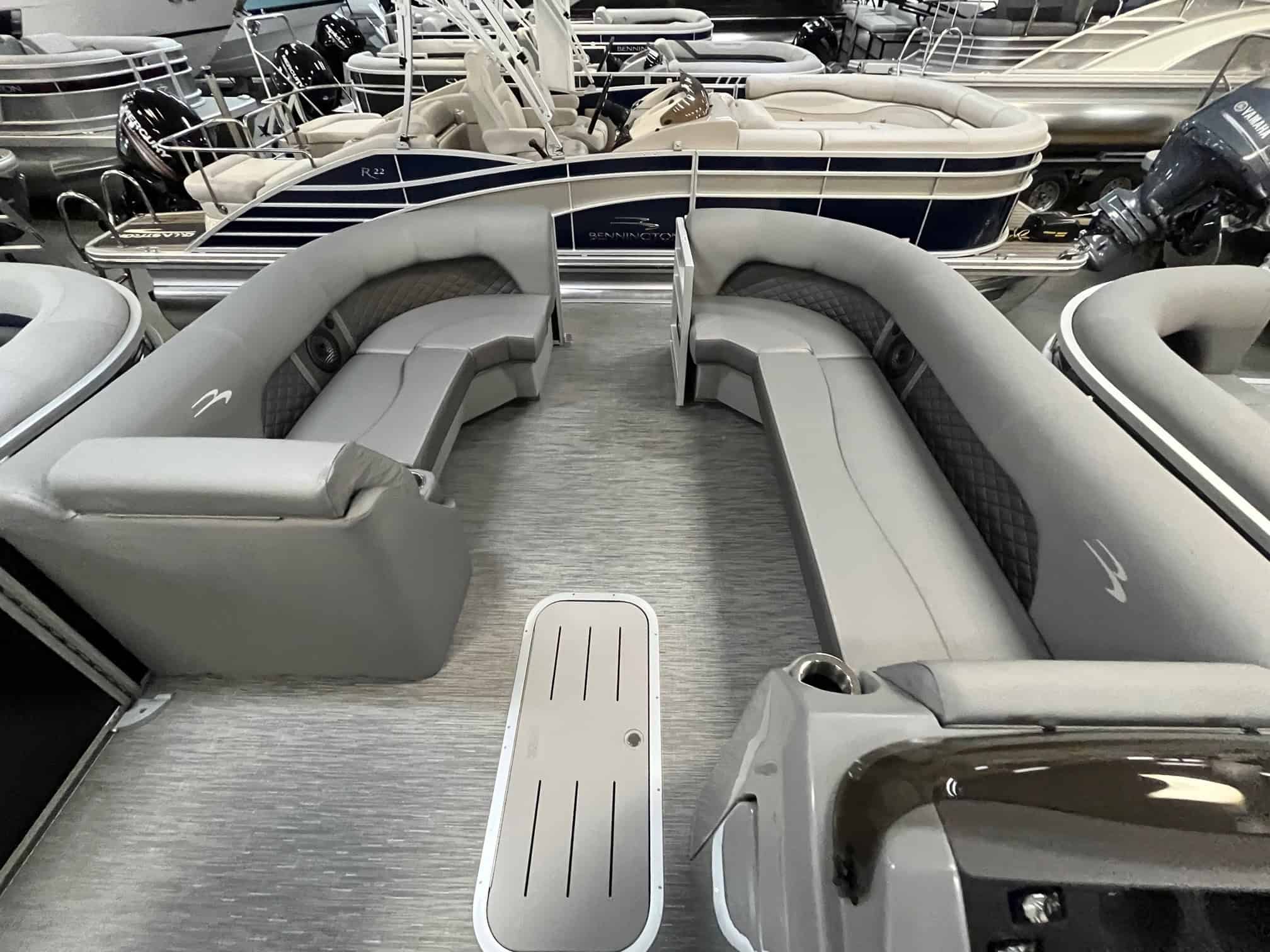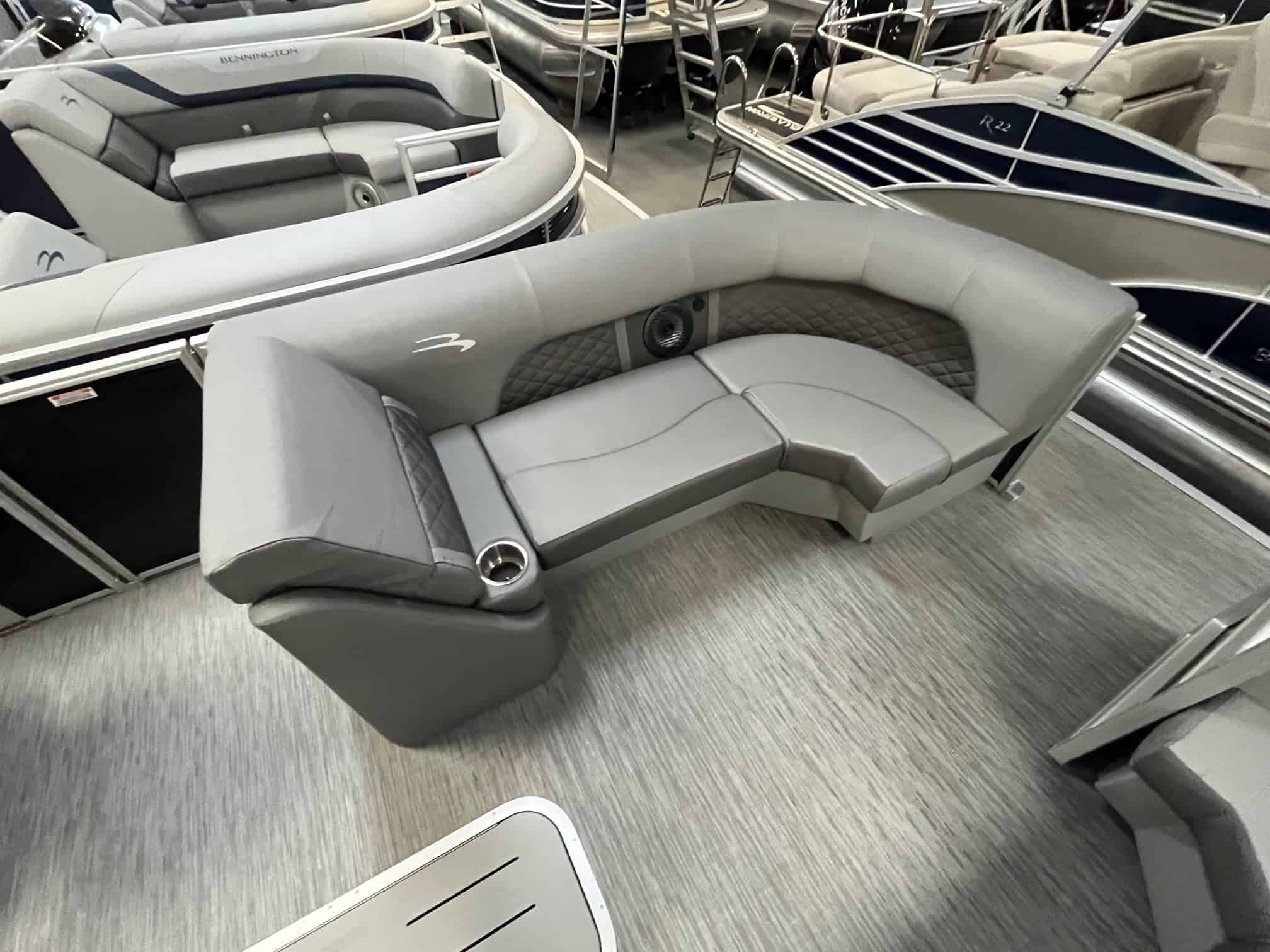 Experience luxury and performance like never before with the 2023 Bennington 23 LSB. This stunning boat, available at Hall's Sport Center in Grand Rapids, boasts a plethora of upscale features, designed to elevate your boating experience. With options like a metallic silver accent panel, Rockford PMX 2 stereo with swingback stereo remote, lighted dinette table, and RGB control gauge panel, you will be cruising in style. Enjoy the convenience of in-floor storage, large fuel/water separator, and pop-up cleats. The power distribution center, dual battery switch, and heavy-duty rub rail ensure safety and reliability. The 150HP Mercury engine upgrade promises thrilling speed and powerful performance. Make the waters your private paradise with the privacy option and docking lights. This is not just a boat; it's a lifestyle.
