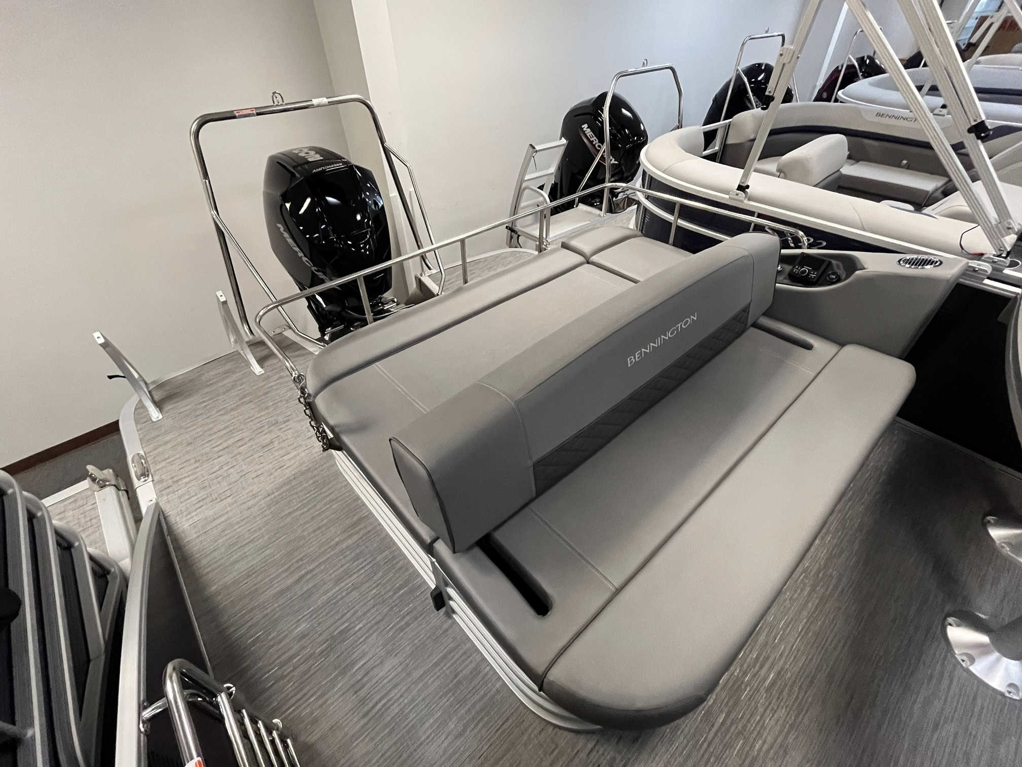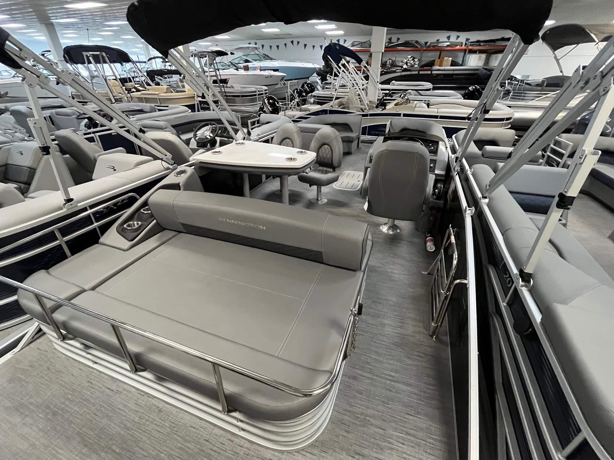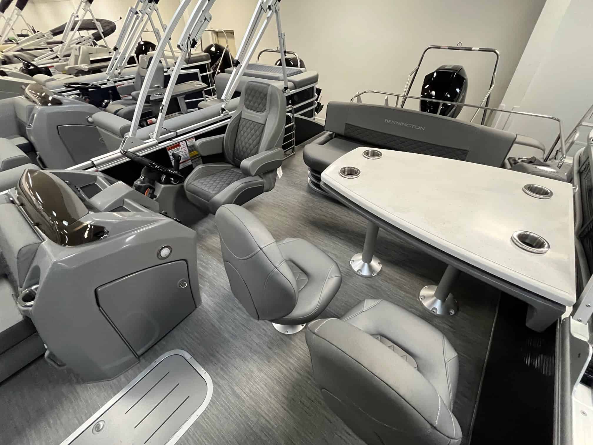 Experience luxury and performance like never before with the 2023 Bennington 23 LSB. This stunning boat, available at Hall's Sport Center in Grand Rapids, boasts a plethora of upscale features, designed to elevate your boating experience. With options like a metallic silver accent panel, Rockford PMX 2 stereo with swingback stereo remote, lighted dinette table, and RGB control gauge panel, you will be cruising in style. Enjoy the convenience of in-floor storage, large fuel/water separator, and pop-up cleats. The power distribution center, dual battery switch, and heavy-duty rub rail ensure safety and reliability. The 150HP Mercury engine upgrade promises thrilling speed and powerful performance. Make the waters your private paradise with the privacy option and docking lights. This is not just a boat; it's a lifestyle.
