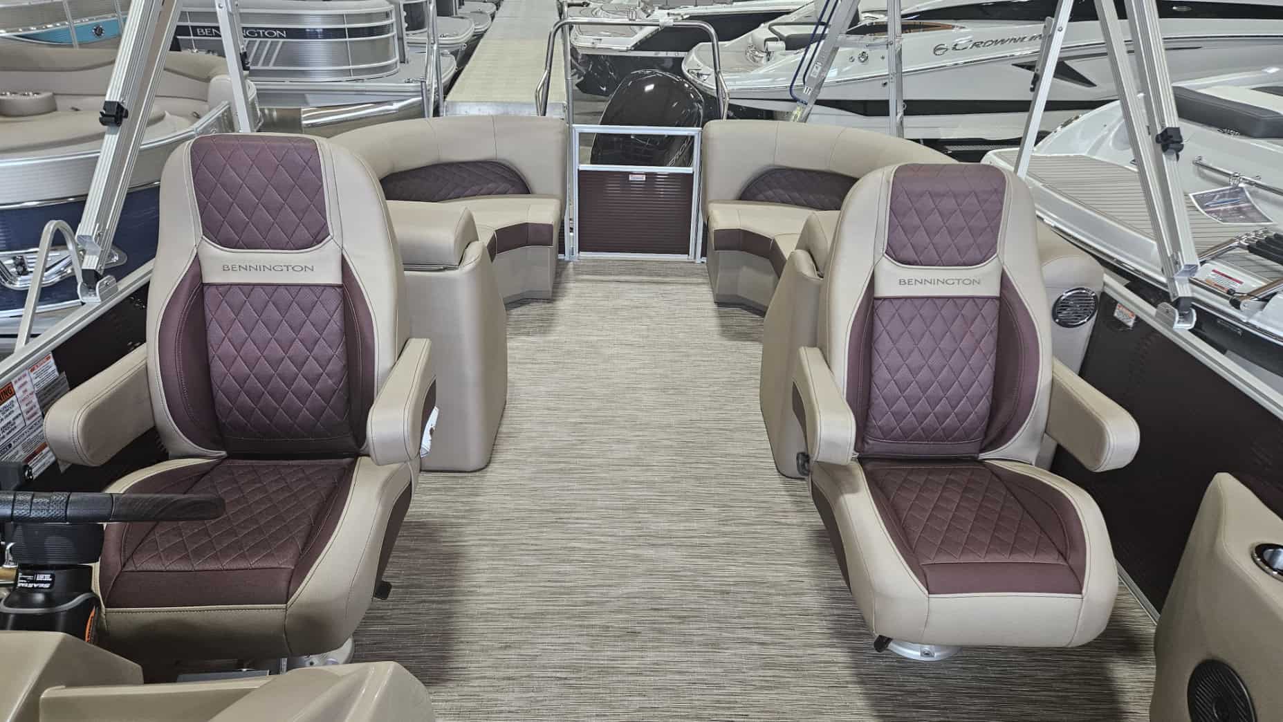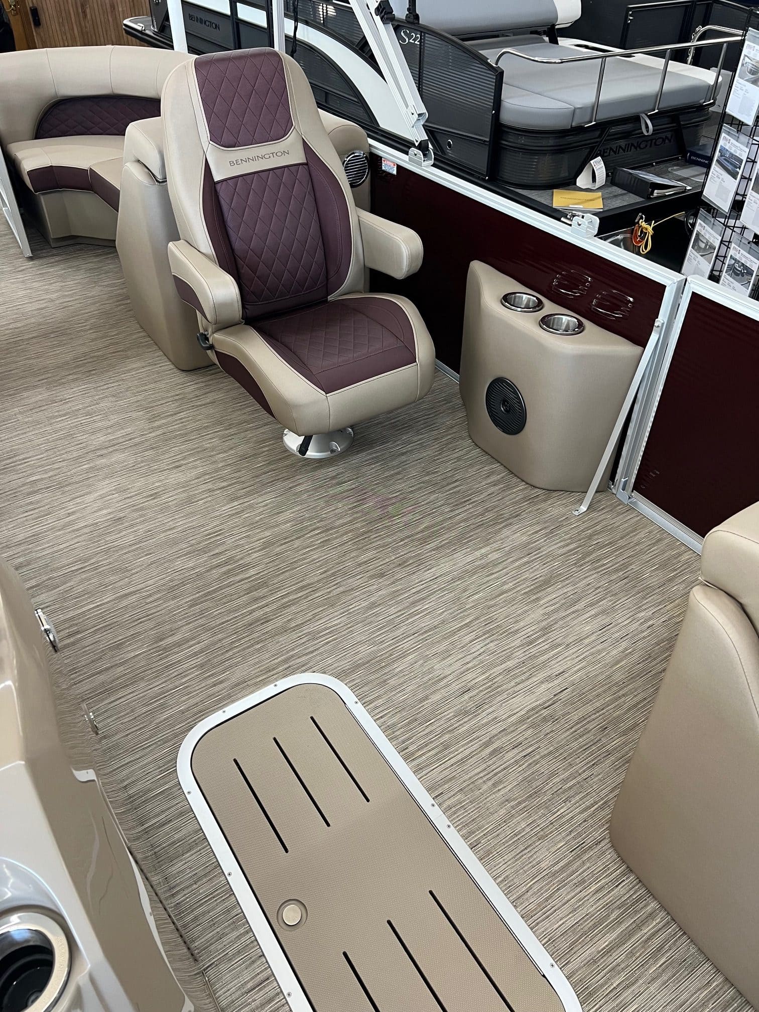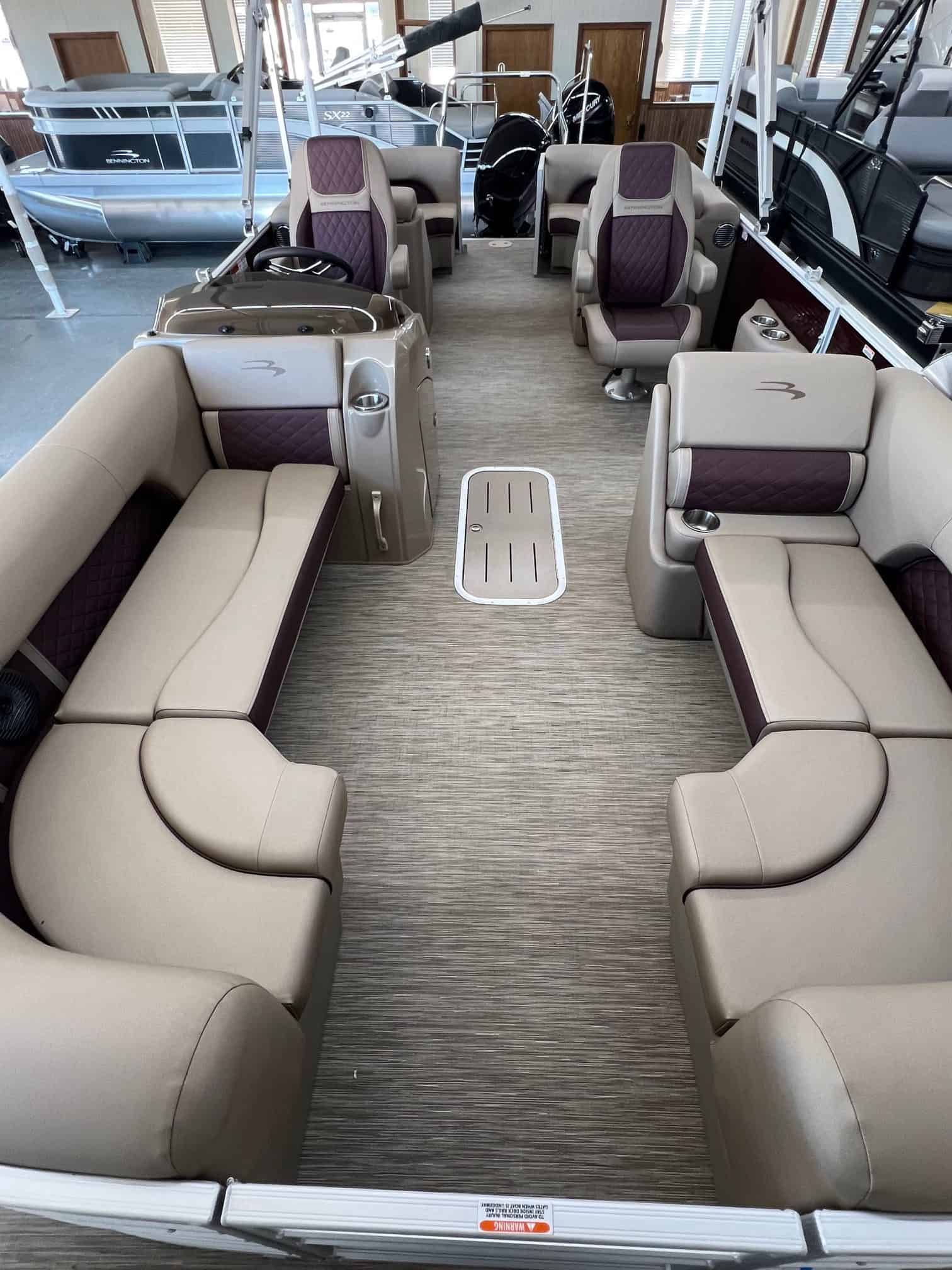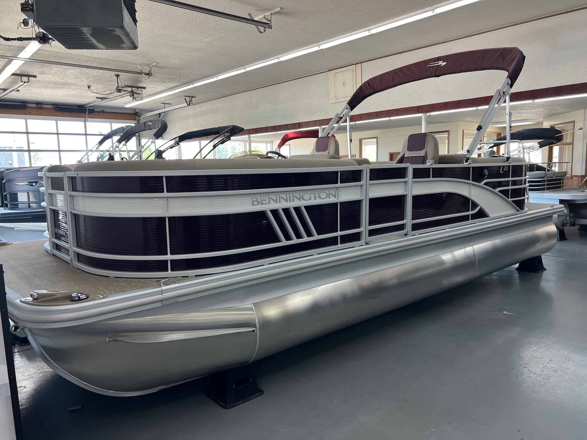 Dive into luxury with the 2023 Bennington 23 LSR boat, available now at Hall's Sport Center in Muskegon. This sleek, high-performance vessel is designed with top-tier features, including a metallic white accent panel, Rockford PMX 2 sound system, and a ski tow bar for all your water sport needs. Boost your boating experience with the powerful 150HP Mercury engine upgrade, and keep your essentials secure in the in-floor storage. Navigate with ease thanks to the Striker 4 fish graph, and relax in style with Dia pressed lux recliners. Additional features like the heavy-duty rub rail, SPS package with a 32 gal transom fuel tank, and an extended aft deck with curved ladder further enhance this boat's functionality and appeal. To top it all off, the custom wheel with Zebrawood beige accents adds a touch of sophistication. Don't miss out on this incredible boating opportunity!
