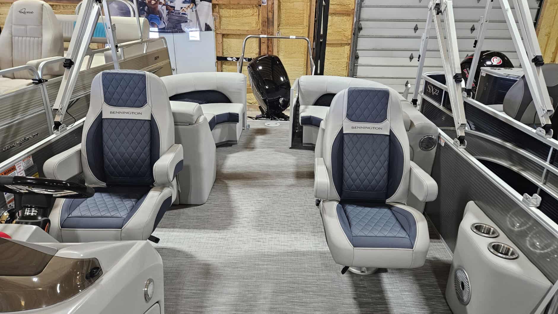 Experience the unparalleled thrill of sailing with the 2023 Bennington 23 LSR, exclusively available at Hall's Sport Center in Grand Rapids. This state-of-the-art boat is equipped with a bevy of top-tier features, including a STRIKER 4 FISH GRAPH for seamless navigation, two DIA PRESS LUX RECLINERS for unmatched comfort, an EXTENDED AFT DECK with a CURVED LADDER, and the SPS PACKAGE with a 32-gallon transom fuel system. The 23 LSR even comes with a 150HP MERCURY ENGINE UPGRADE, offering more power and speed than ever before. Enjoy the convenience of in-floor storage, the durability of a heavy-duty rub rail, and the fun of a ski tow bar. With an ocean blue accent panel, a console storage pocket with a cupholder, and a ROCKFORD PMX 2 STEREO, it's clear that this boat is designed with both style and functionality in mind. Don't miss out on the chance to own the ultimate marine masterpiece.