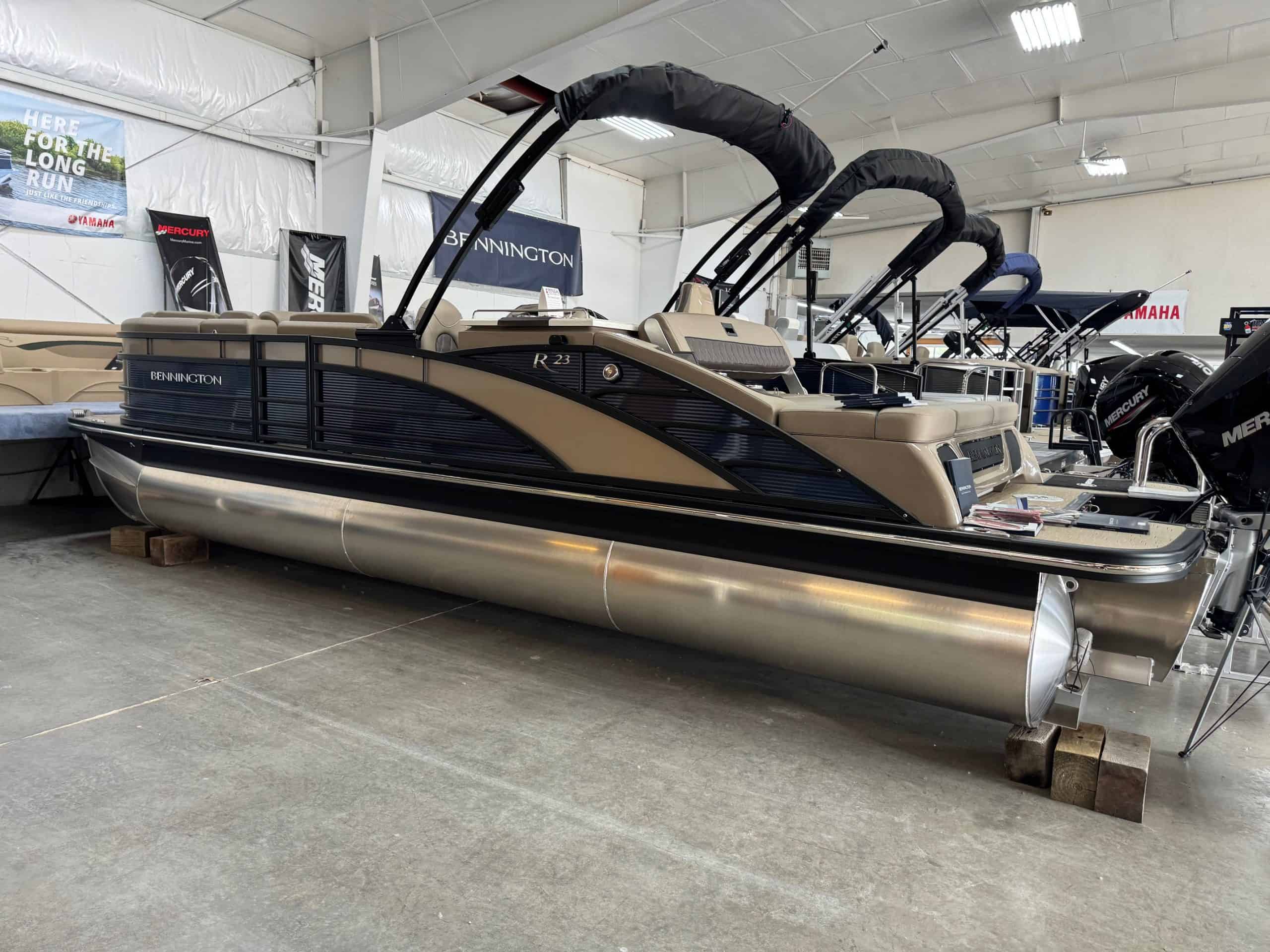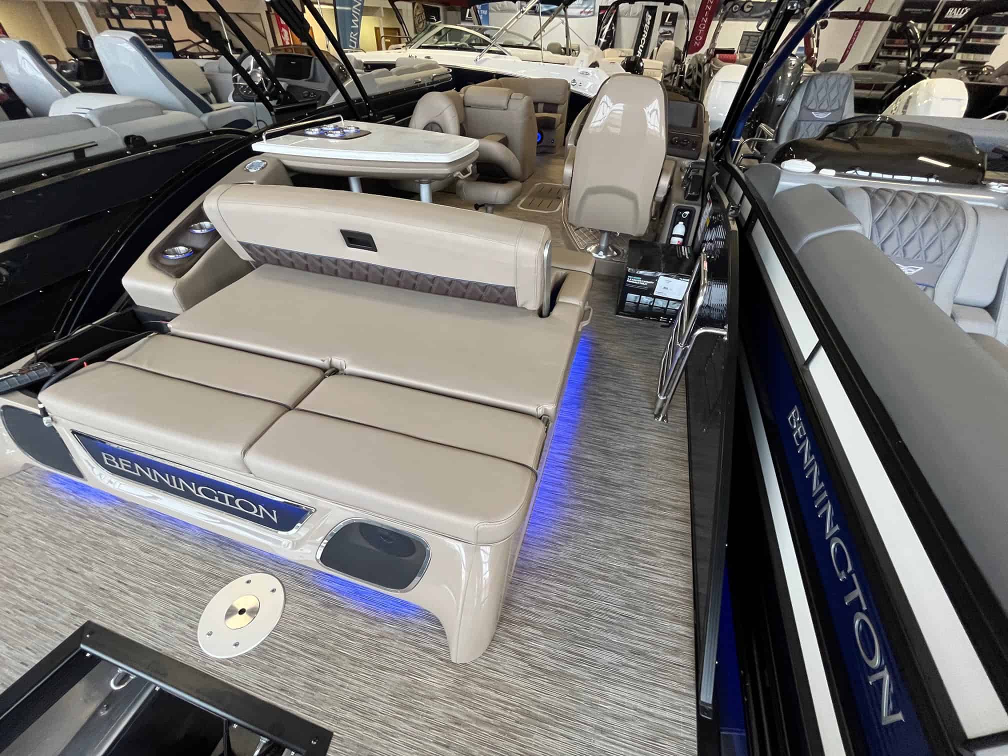 Experience the pinnacle of luxury and performance with the 2023 Bennington 23 RSB, now available at Hall's Sport Center in Muskegon. This boat is tailored for those who refuse to compromise on quality. It comes equipped with an array of superior features such as an ACCENT PANEL (SMOOTH METALLIC PLATINUM), BLACKOUT LUX PACKAGE, and a KICKER SUB & AMP UPGRADE for an amazing auditory experience. With the elevated helm console chaise and SS CORVINA WHEEL (BROWN), you'll enjoy navigating the open waters in style. For night-time voyages, the TOE KICK LIGHTING, SIDE ILLUMINATION, and CUPHOLDER LIGHTING provide a touch of elegance. The boat also features a SWINGBACK DINETTE EXCHANGE, REMOVABLE GATE SEAT, and DELUXE SWINGBACK for maximum comfort and flexibility. And if that's not enough, the 300HP MERCURY VERADO ENGINE UPGRADE ensures a smooth, powerful ride every time. Come to Hall's Sport Center and make the 2023 Bennington 23 RSB your ultimate marine companion.