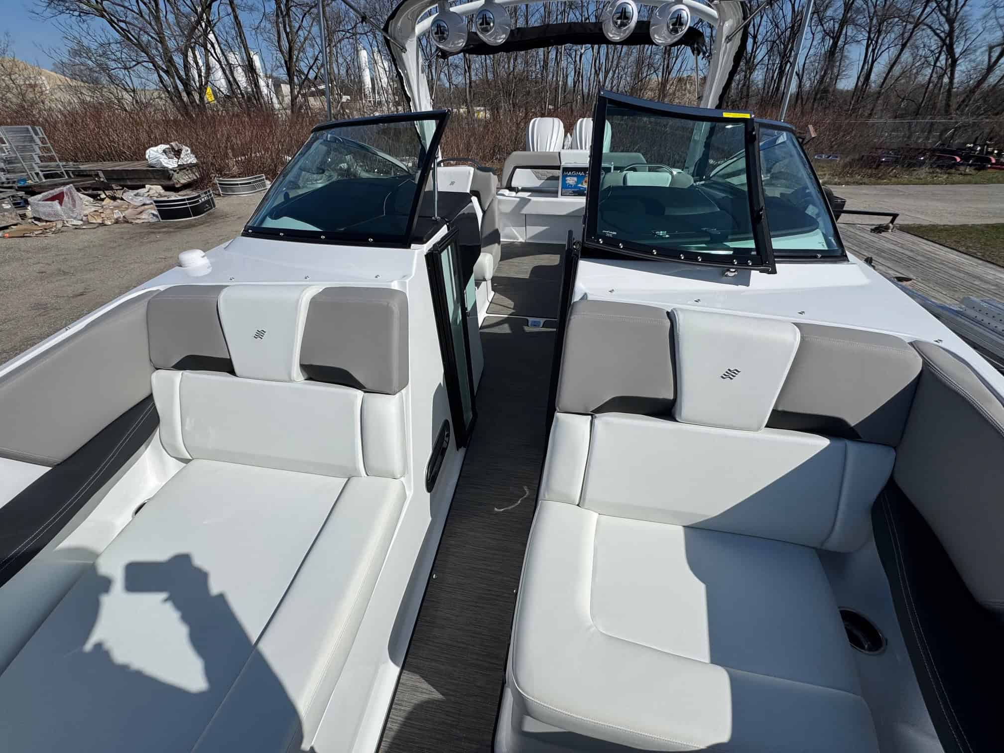 Experience the thrill of the open water like never before in this 2025 Four Winns H290, available exclusively at Hall's Sport Center in Muskegon. Designed with the discerning boater in mind, this luxurious vessel boasts an array of premium features; from its Lunar/Ebony accent cockpit color and U-Wrap 9B seating to its Reed cockpit flooring in Ash. The onboard galley is equipped with a fridge and sink for your convenience, while the premium sound system, wake tower speakers, and gas grill are ready to take your boating parties to the next level. Dive into the night with underwater LED lighting, and cast off with ease using the windlass w/anchor, rope, and chain. The LX and SLX packages with black canvas promise a stylish serenity on the water. This particular model is available with no discounts or rebates, a testament to its extraordinary value.