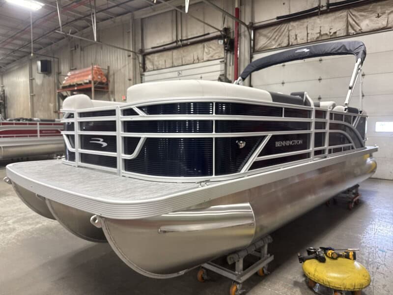 Take boating to the next level with this 2026 Bennington 22 SSR, now available at Hall's Sport Center in Muskegon. This high-performance watercraft comes with a 150HP Yamaha engine upgrade offering unparalleled power and speed on the water. Enhanced with the SPS package featuring a 33-gal transom fuel tank, you'll enjoy extended cruising without frequent stops. The boat features Analog V3 gauges coupled with an EchoMap 52CV chartplotter, ensuring you're always on course. The Yamaha Mech Pre-Rig, Ski Tow Bar, wireless charger, and Capt/Co-Capt mid recliner are all designed for your ultimate comfort and convenience. Don't miss this chance to own a top-tier vessel, perfectly suited for both leisure and sport.