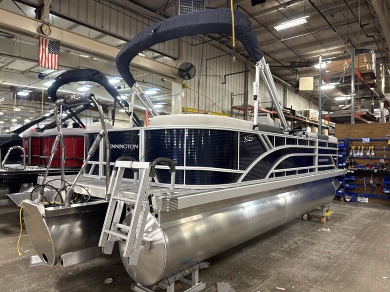 Introducing the 2026 Bennington 22 SSR, the epitome of aquatic luxury and performance. Docked at Hall's Sport Center in Muskegon, this boat is primed to redefine your water adventures. Equipped with a powerful 150HP Yamaha engine upgrade, the 22 SSR guarantees a thrilling ride across the waves. The YAM HYD CYL and analog V3 ECHOM ensure a seamless navigation experience. With the SPS package including a transom direct fill and a ski tow, your water-skiing and wakeboarding sessions are set to be epic. And when you need to recharge, the boat's wireless charger keeps your devices powered up. Experience the ultimate in power, comfort, and technology with the 2026 Bennington 22 SSR.