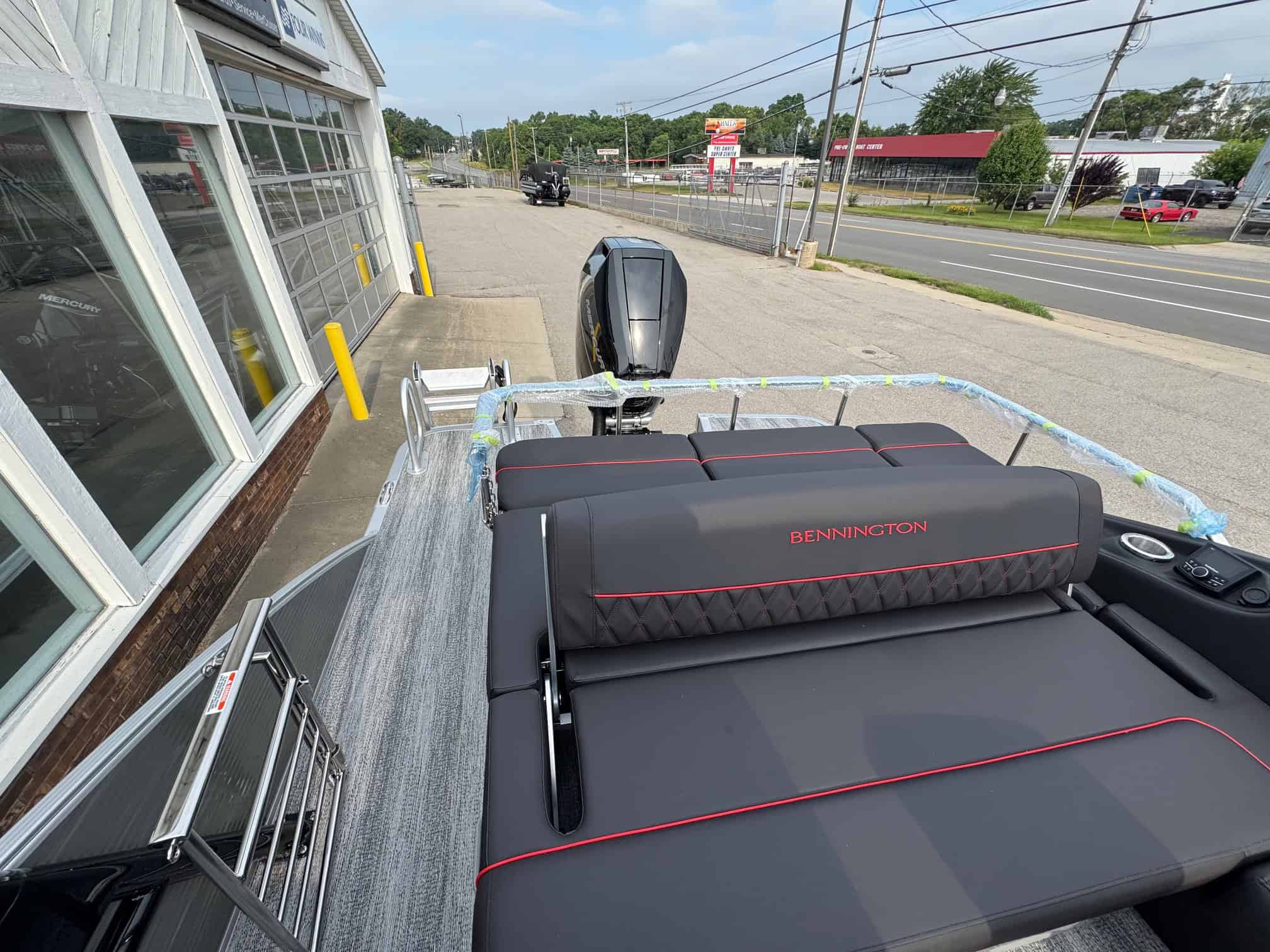 Discover the thrill of open water adventures with the 2026 Bennington 25 RSBA, available now at Hall's Sport Center in Muskegon. This luxury boat is loaded with features designed for both comfort and performance. Enjoy the convenience of a dual battery with port switch, 9" Simrad multi-function display, and the peace of mind provided by the Mercury Dig. pre-rig. The boat's stunning exterior boasts a smooth Gemini black accent panel, power-clad sport arch, exterior side lighting, and a luxury SS keeper rail. Inside, you'll find Rockford Fosgate speakers, pillowtop diamond stitch sport upholstery, midship port bench exchange, and a deluxe swingback. With the ESP performance package, 350HP Mercury Verado, and 73-gallon fuel capacity, you're ready for extended trips on the water. Additional comforts include a privacy curtain, porta potti, washdown, and in-floor & anchor storage. Don't wait – your dream boat awaits at Hall's Sport Center!